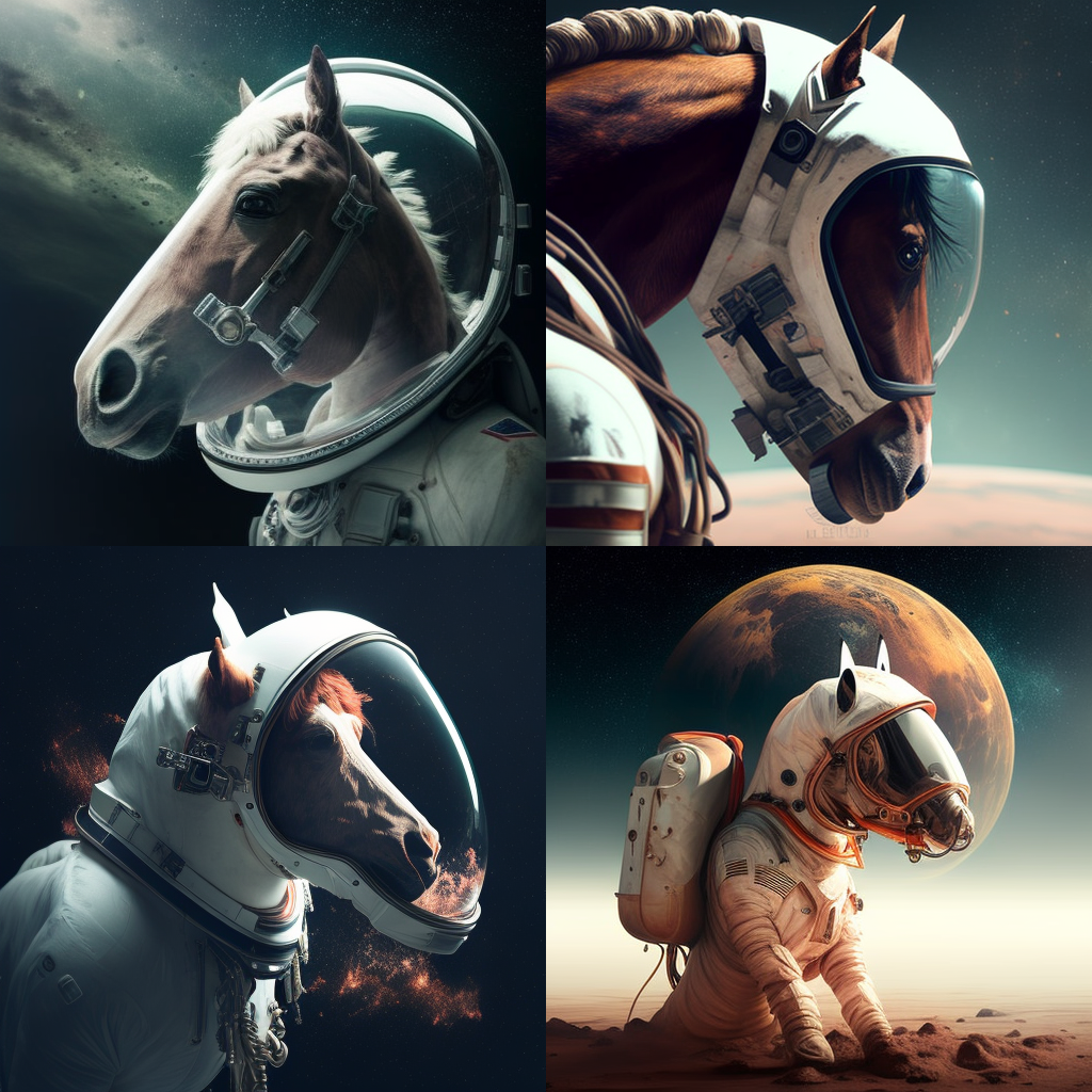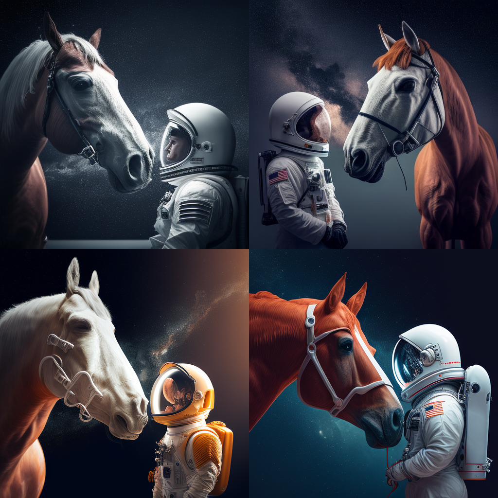/imagine prompt: astronaut on a horse --ar 3:2 --c 70 --q 2 --seed 1000