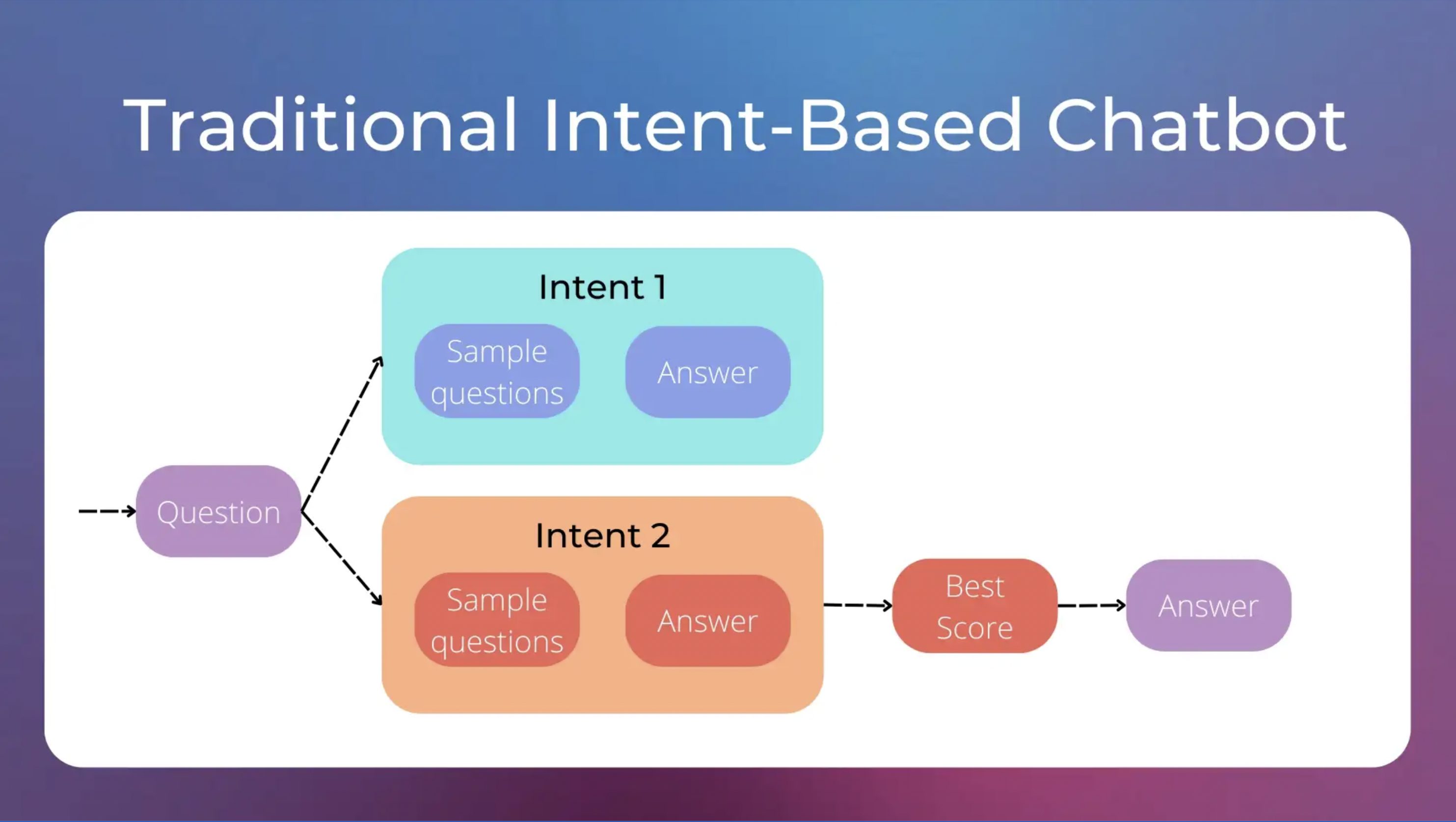 传统基于意图的聊天机器人的工作原理。图像由作者制作。