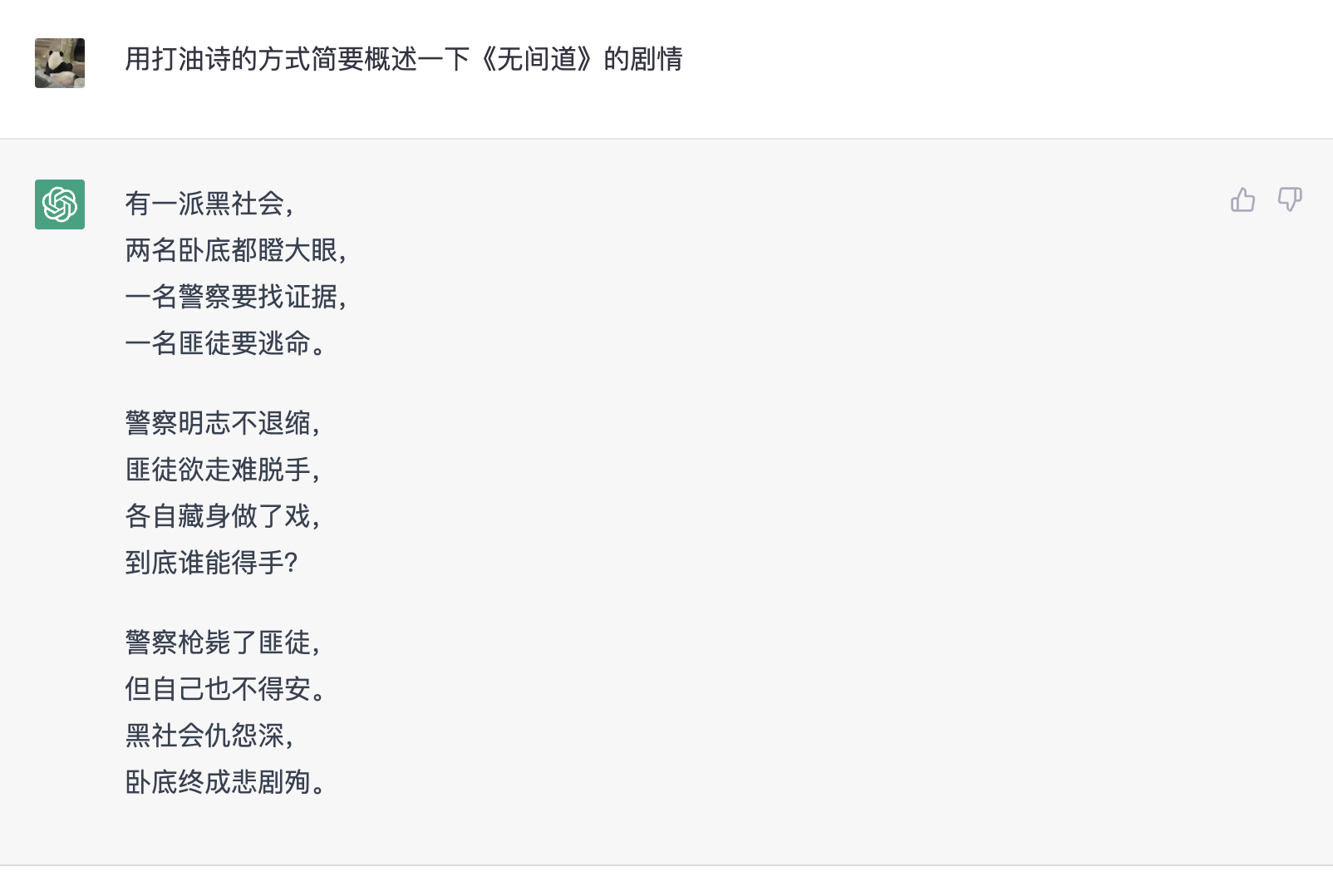 风格指导就是要求 AI 以某种特定的风格来表达。如果没有给出风格指导的问题,ChatGPT 通常会返回一两个短段落的回答,少数需要更长的回答时会返回更多内容。