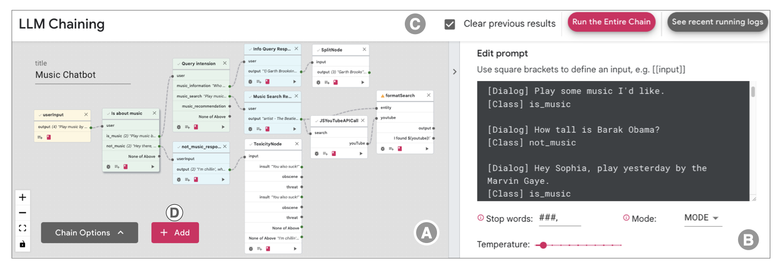 1. Wu, T., Jiang, E., Donsbach, A., Gray, J., Molina, A., Terry, M., & Cai, C. J. (2022). PromptChainer: Chaining Large Language Model Prompts through Visual Programming.