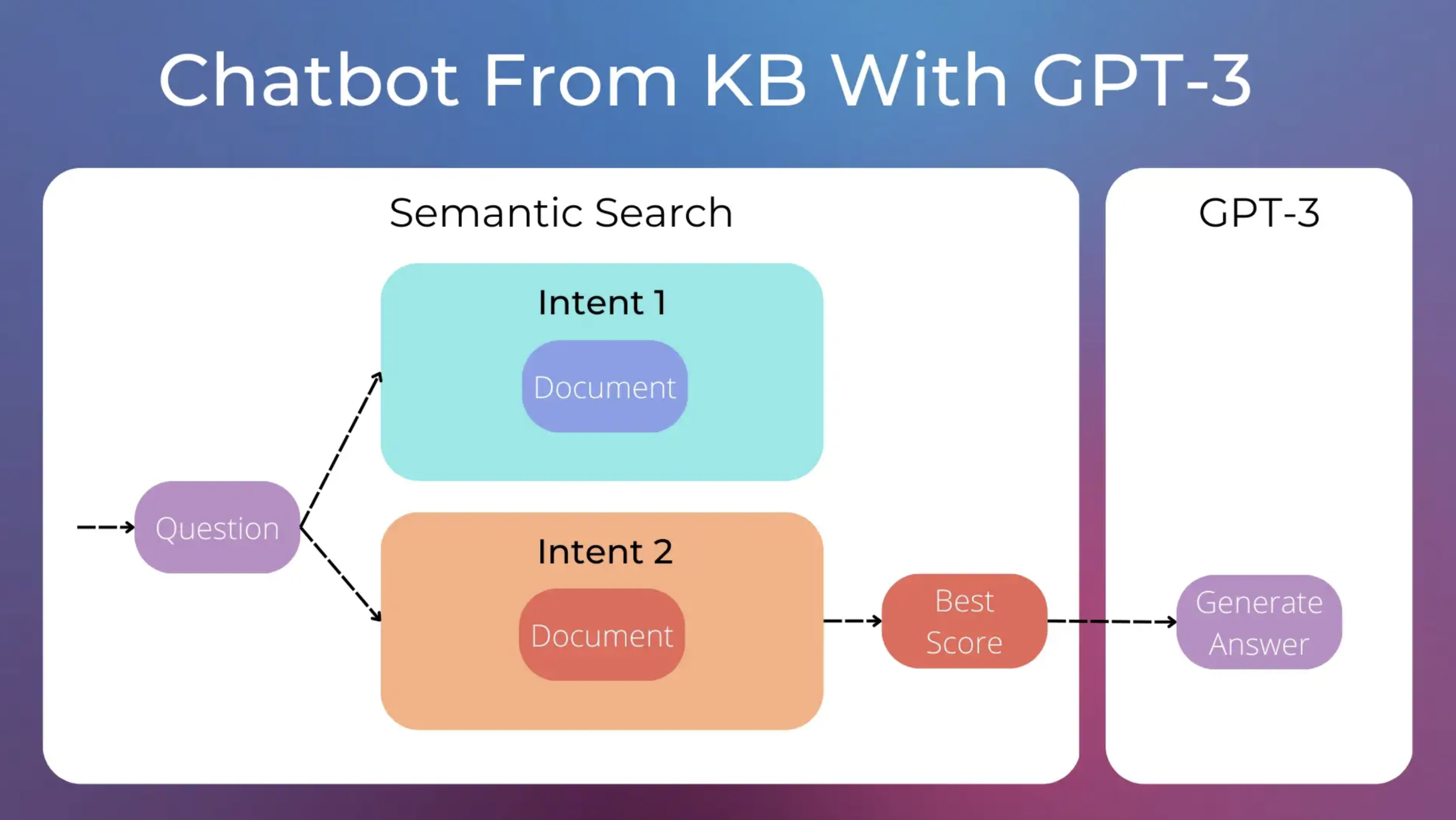 This is where GPT-3 can be particularly useful. Instead of having many very specific intents, each intent can be broader and leverage a document from your Knowledge Base. A Knowledge Base (KB) is information stored as structured and unstructured data, ready to be used for analysis or inference. Your KB may be composed of a series of documents explaining how to use your products.