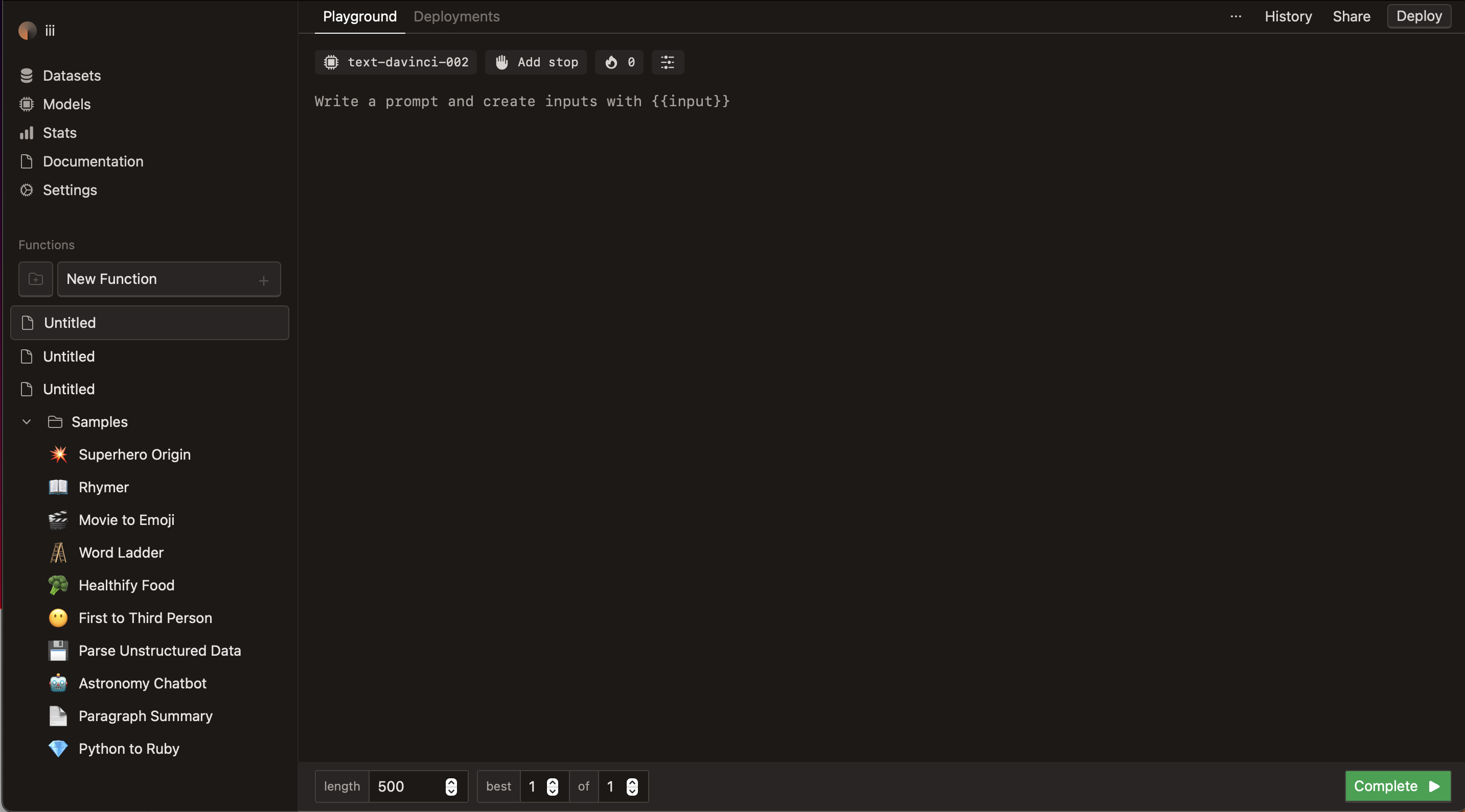 Everyprompt tiene un conjunto variado de características, que incluyen diferentes modelos GPT, conjuntos de datos y estadísticas. Se debe tener en cuenta que el soporte para algunas de estas características requiere enviar un correo electrónico a los desarrolladores, por lo que no está claro qué tan implementadas están hasta ahora. También proporcionan 50.000 tokens gratuitos.