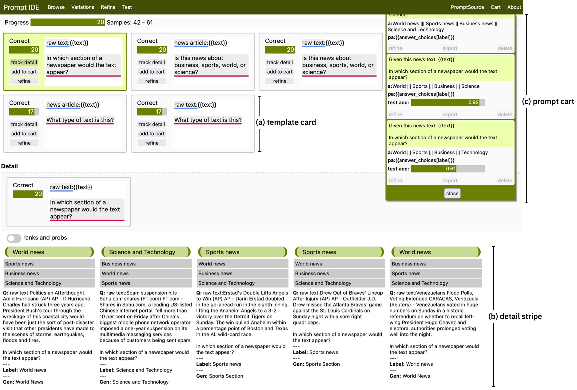 - Strobelt, H., Webson, A., Sanh, V., Hoover, B., Beyer, J., Pfister, H., & Rush, A. M. (2022). Interactive and Visual Prompt Engineering for Ad-hoc Task Adaptation with Large Language Models. arXiv. https://doi.org/10.48550/ARXIV.2208.07852 ↩
