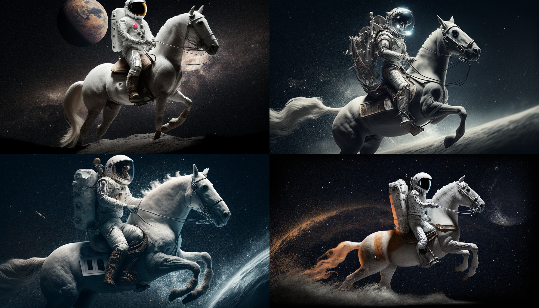 Example: astronaut on a horse --ar 16:9 and astronaut on a horse --ar 1:2