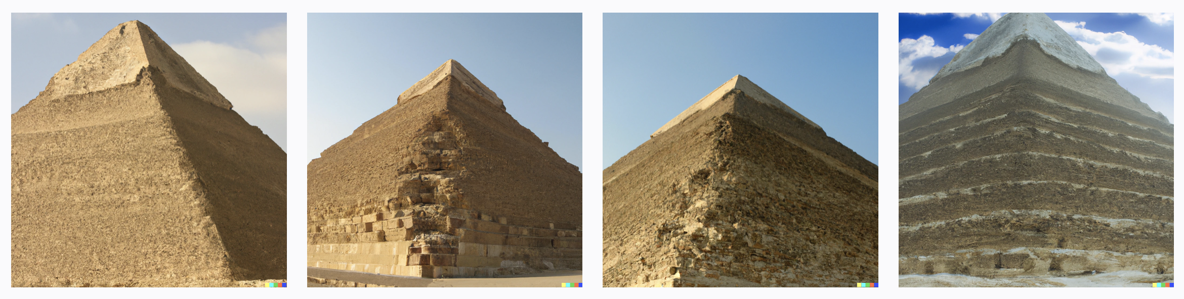 Here are a few pyramids generated by DALLE, with the prompt pyramid.