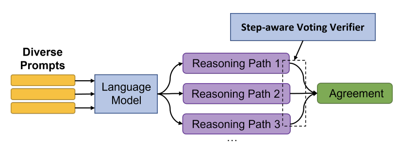 DiVeRSe1 ("Diverse Verifier on Reasoning Steps") is a method that improves the reliability of answers in a threefold manner. It does this by 1) using multiple prompts to generate diverse completions, 2) using a verifier to distinguish good answers from bad answers, and 3) using a verifier to check the correctness of reasoning steps.
