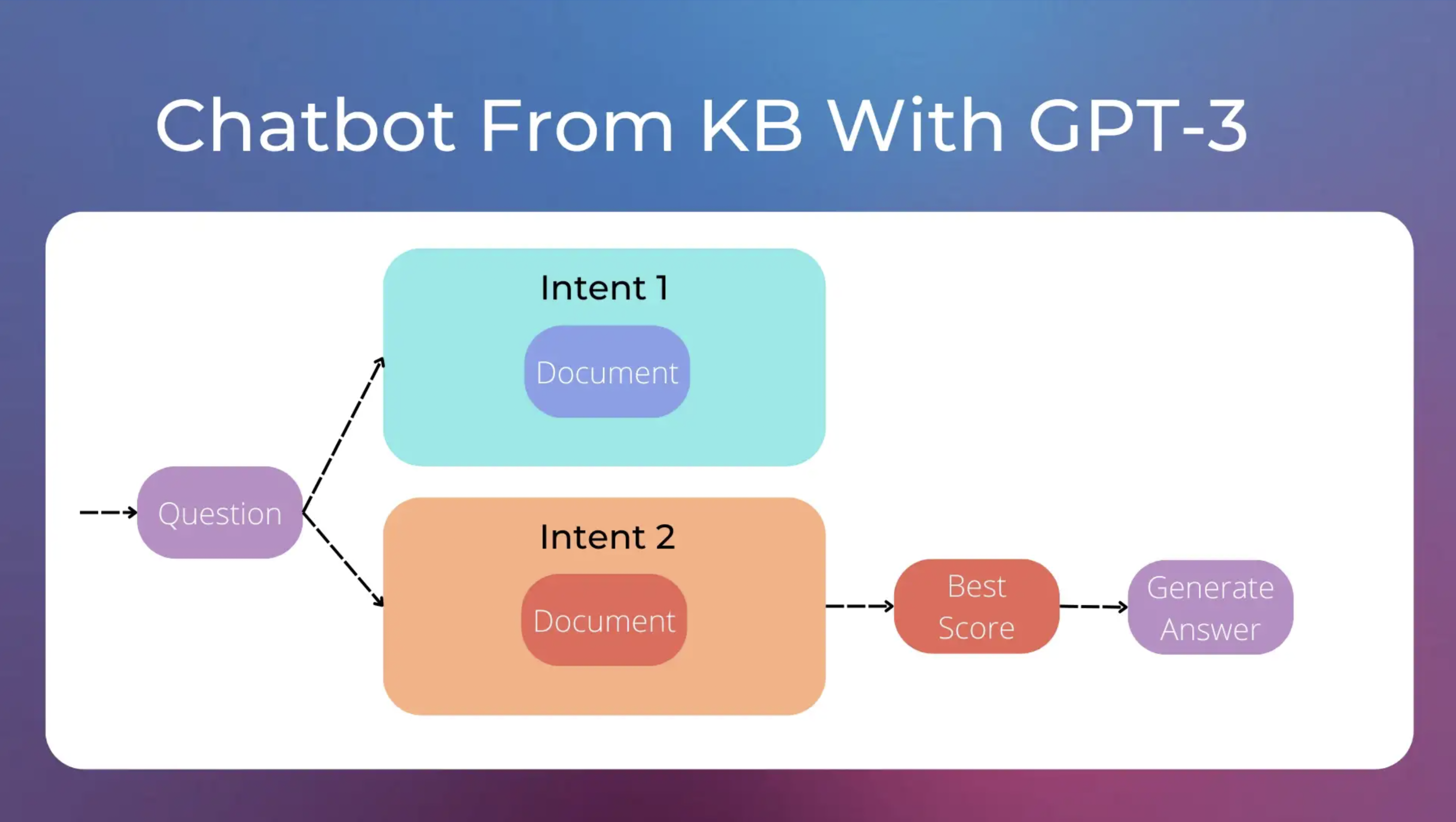 This is where GPT-3 can be particularly useful. Instead of having many very specific intents, each intent can be broader and leverage a document from your Knowledge Base. A Knowledge Base (KB) is information stored as structured and unstructured data, ready to be used for analysis or inference. Your KB may be composed of a series of documents explaining how to use your products.