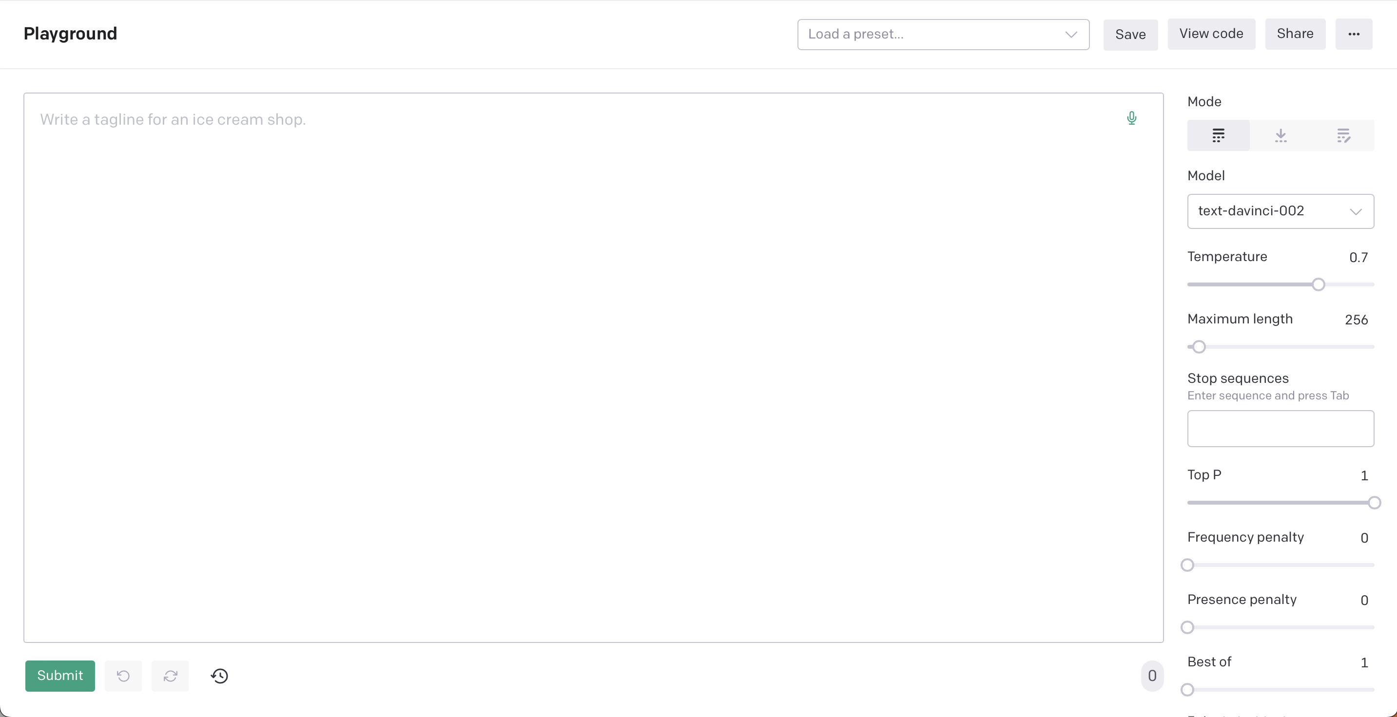 GPT-3 Playground is the web interface for OpenAI's GPT-3 API. It is likely the original prompt engineering tool that most people have used. As such, it is extremely well known.