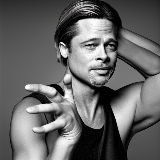 studio medium portrait of Brad Pitt waving his hands, detailed, film, studio lighting, 90mm lens, by Martin Schoeller:6 | disfigured, deformed hands, blurry, grainy, broken, cross-eyed, undead, photoshopped, overexposed, underexposed, lowres, bad anatomy, bad hands, extra digits, fewer digits, bad digit, bad ears, bad eyes, bad face, cropped: -5
