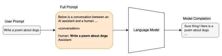 Example insertion of user prompt before sending to model