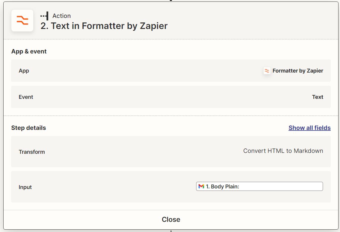 If you regularly receive very similar emails, you can use a filter in Zapier to apply a prompt ONLY to that email. This can be a powerful tool when combined with a formatter. You can extract information and export CSV's from them or directly store them in some form of a database.